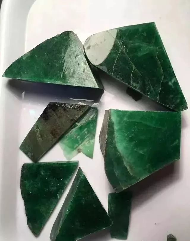 把原石一块一块切开,不愧是帝王裂,连里头都满是裂纹,颜色虽然很深,但看着脏点还不少...(哈哈,懂行的人就知道成果肯定不菲!)