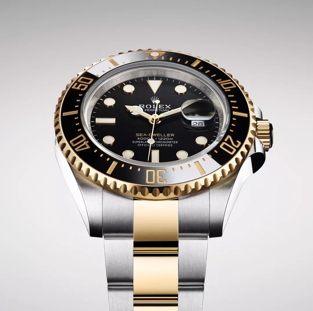 劳力士推出蚝式恒动海使型(Oyster Perpetual Sea-Dweller)黄金钢款(蚝式钢与18ct 黄金的组合)。此乃海使型系列首次采用18ct 黄金材质。“Sea-Dweller”(海使型)以黄色字体镌刻在黑色表盘上,与腕表采用的18ct 黄金相互辉映。其2017 年款,“Sea-Dweller”以红色字体镌刻在表盘上,藉此致敬首款海使型腕表。海使型配有单向旋转外圈及60 分钟刻度黑色 Cerachrom 陶质字圈,表壳及表耳两侧折射出淡雅光泽,令43 毫米蚝式表壳的轮廓更突出,倍添魅力。新款搭载制表技术领先的 3235 型机芯。一如所有劳力士腕表,新款海使型均获超卓天文台精密时计认证,保证腕表于佩戴时能发挥超卓性能。