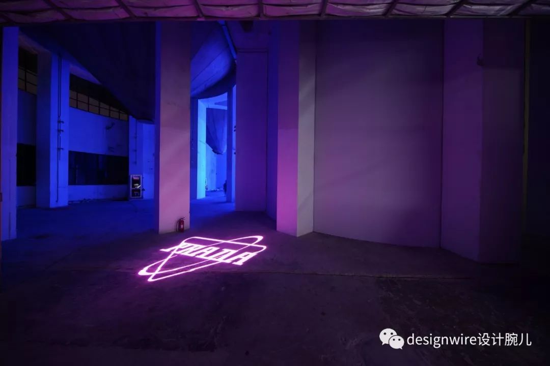 Prada 2020春夏男装时装秀秀场,AMO为东岸·民生艺术码头筒仓打造光之装置以放大其工业风格和粗犷质感。