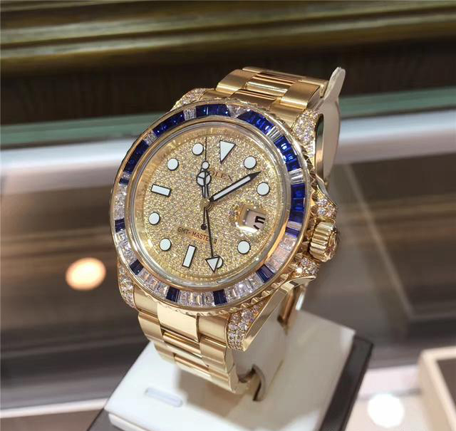 Rolex 劳力士格林尼治型II系列,116758 SA-78208密镶钻-钻带。40毫米表径,18k黄金镶钻宝石,表圈镶嵌29颗钻石,30颗蓝宝石,表耳镶钻。
